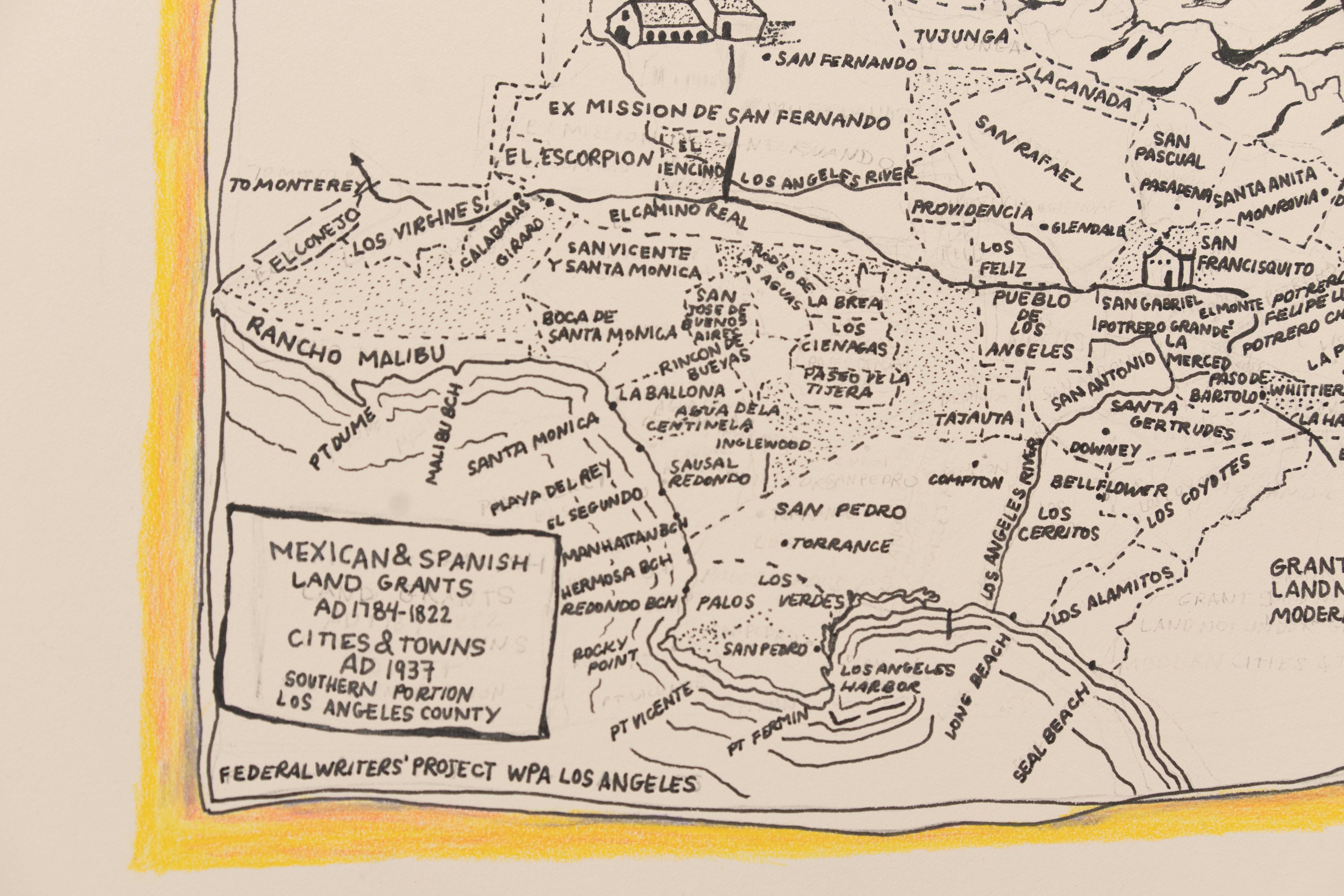 Graphite on matboard; Mexican and Spanish land grants, chart (1937)