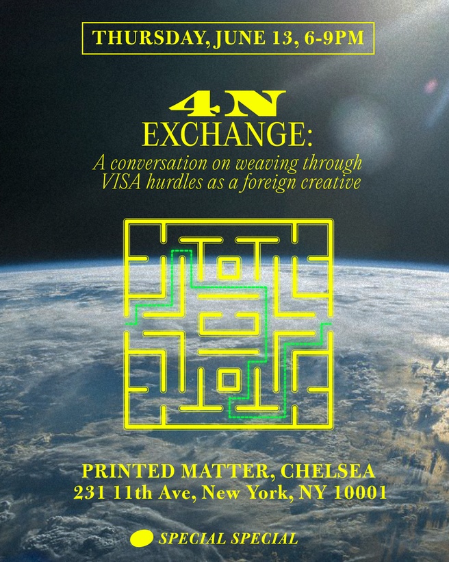 Hosted by Special Special at Printed Matter Chelsea, 4N Exchange featured an evening of creative discussion among the artists in the inaugural issue of 4N Magazine. Moderated by Panny Chayapumh.