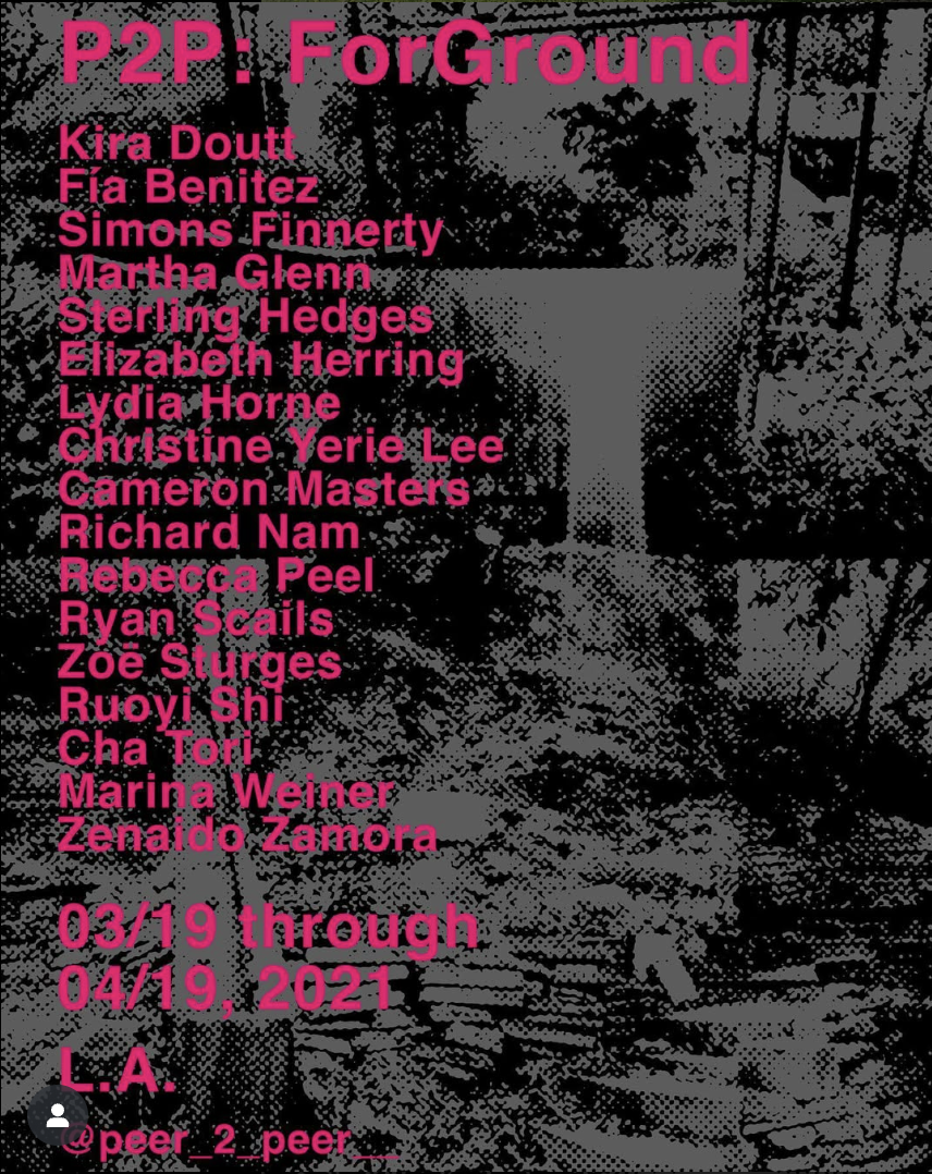 ForGround, a group exhibition curated by Cha Tori and Elizabeth Herring of Peer2Peer, features my work alongside Kira Doutt, Simons Finnerty, Martha Glenn, Sterling Hedges, Elizabeth Herring, Lydia Horne, Christine Yerie Lee, Cameron Masters, Richard Nam, Rebecca Peel, Ryan Scails, Zoë Sturges, Ruoyi Shi, Cha Tori, Marina Weiner, Zenaido Zamora.