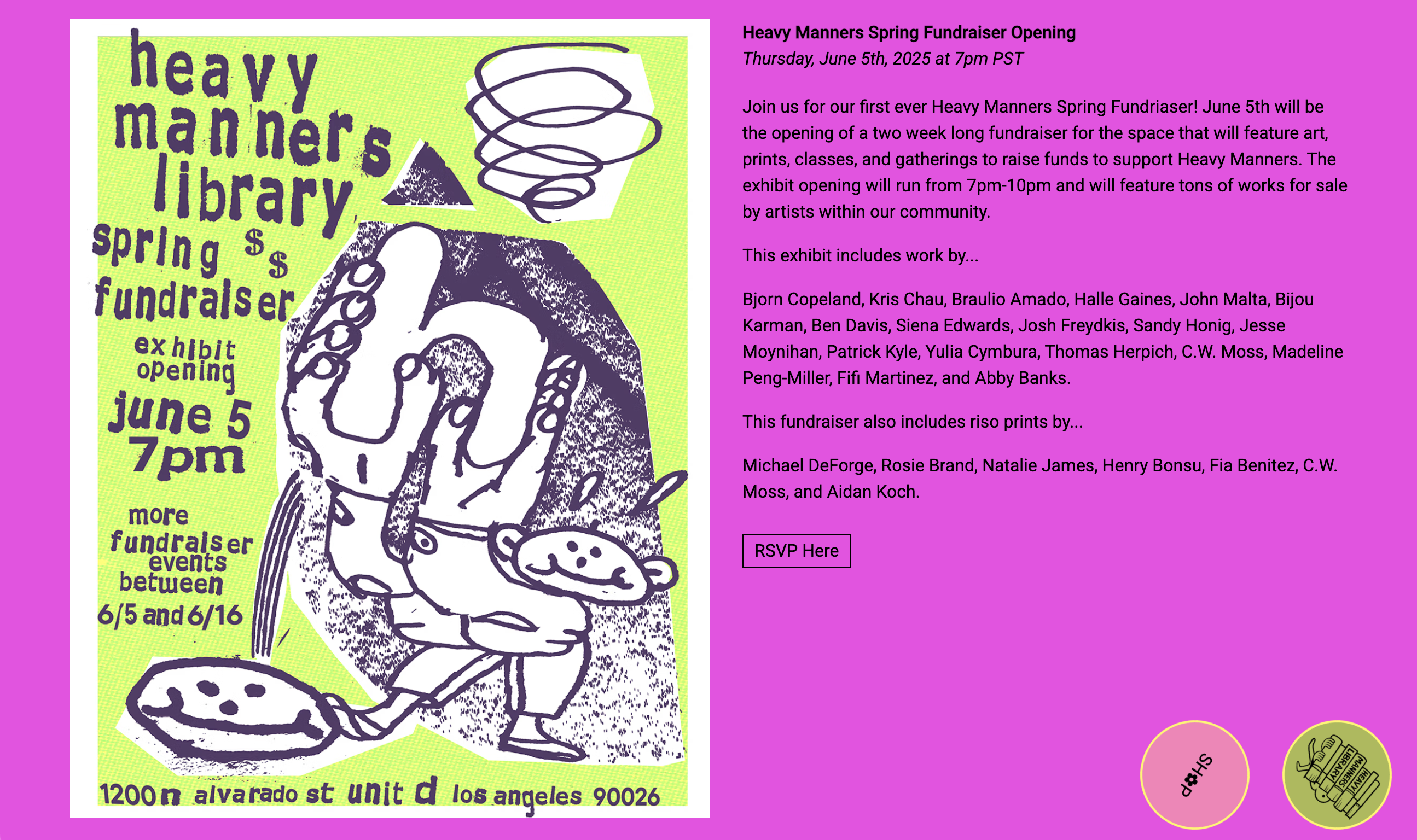 For the Heavy Manners Spring Fundraiser, I donated risograph prints of one of my drawings. It depicts a poster I photographed at a tenants’ rights legal clinic in DTLA.